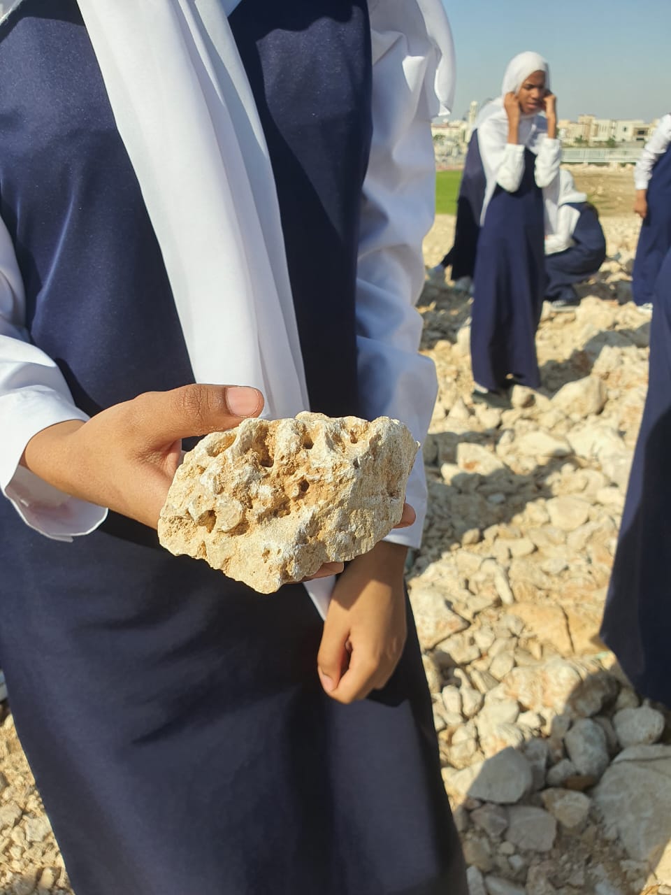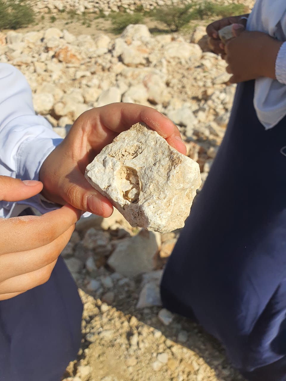 For this reason, The GLOBE Program is one of the most important programs that guides students in schools to know the importance of planet Earth. The Program Supervisor, Sheikha Al-Sawafi (Ibri Basic Education School, Oman), carried out an exploratory trip to the area surrounding the school for the purpose of connecting the students with the environment and learning about the characteristics of the soil, vegetation, and rock formations. This encourages the students to ask questions, try to find solutions, and deduce theories about the eras and circumstances that contributed to their formation.