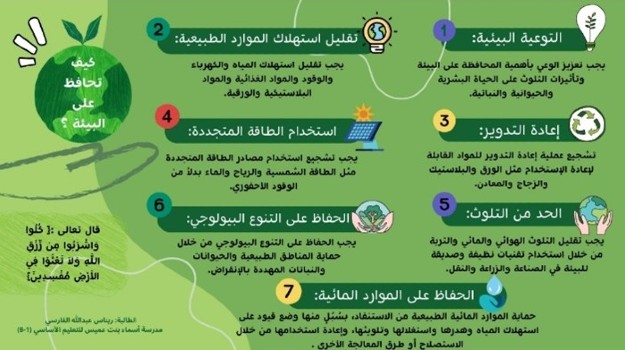 - Student Rinas Al-Farsi designed a card containing instructions and advice on how to protect the planet Earth, which was sent to parents via the WhatsApp application.