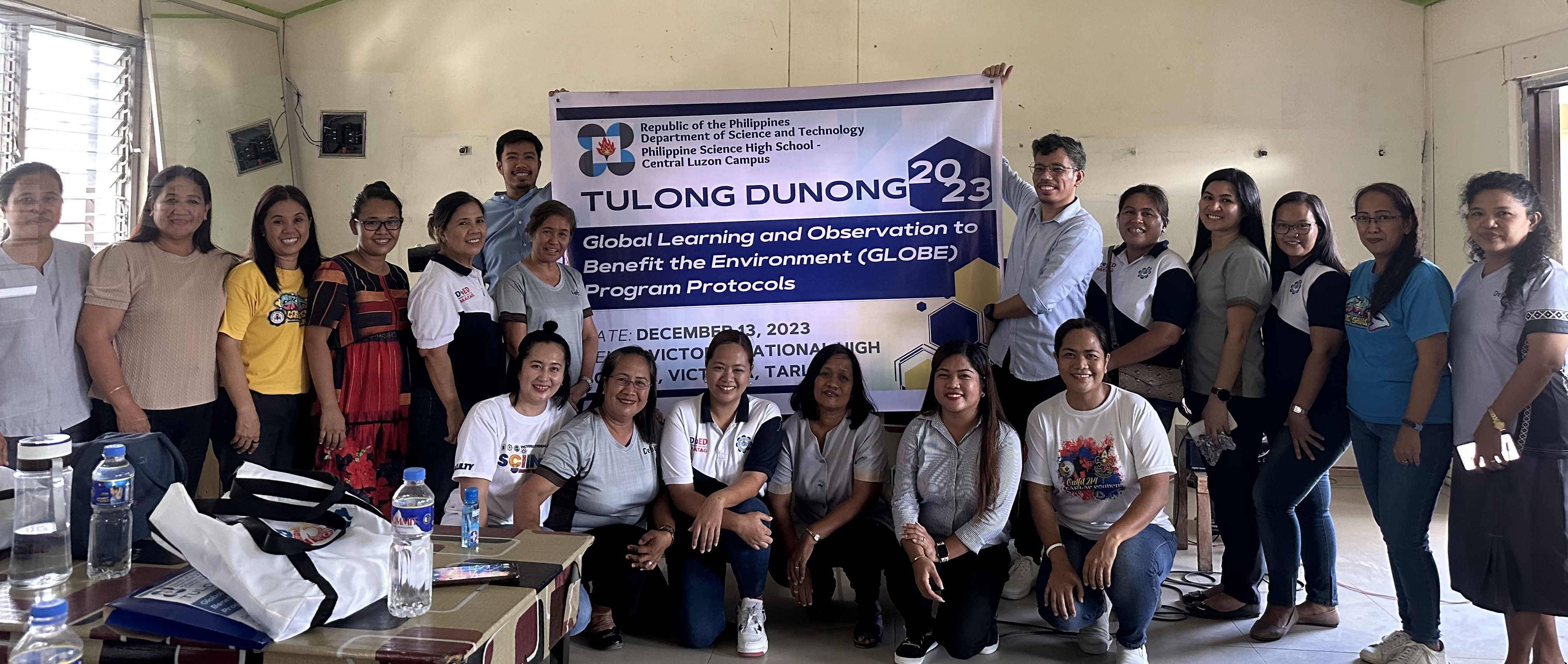 13 December 2023. The PSHS-CLC, as part of the school’s community service and outreach program aimed at capacitating schools and teachers in delivering quality STEM education, conducted a GLOBE protocol training for the Area Heads, Department Heads, and Science & Research Teachers of Victoria National High School in San Gavino, Victoria, Tarlac. The participants were oriented on the use of the GLOBE Protocols as a pedagogical tool in understanding the intricacies, interrelationships, and interdependencies of the Earth’s “Spheres” that make up the “Earth System.” The training offered teachers an alternative teaching-and-learning technique that involved teaching students how to observe the environment, collect environmental data, and share information to the global scientific community thru the GLOBE Website.