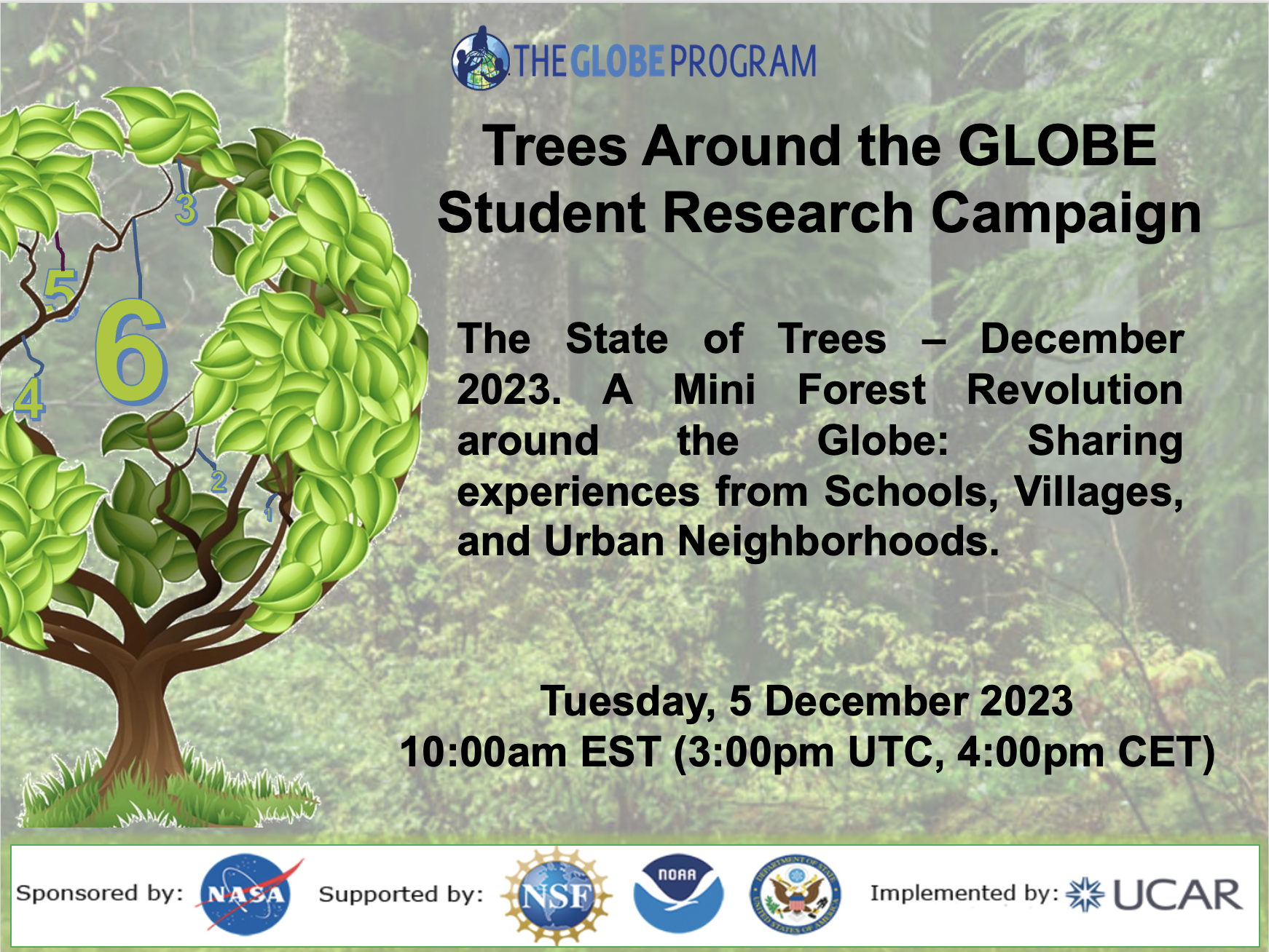 Forests and trees are a vital part of our planet, providing habitats for our planet's creatures to playing an important role in our planet's carbon budget. Join this special webinar on 5 December as we hear from colleagues around the world about their experiences with the Miyawaki Method of tree planting, growing trees near schools, and in villagers and urban neighborhoods. From the planting of over 200,000 trees and over 100 forests in India to restoring forests in countries such as Belgium, reversing the deterioration of the Beirut River by planting native trees, to how creating forests, with students in the United States, has helped students understand the importance of trees and forests to our ever-changing planet. We will also hear from author Hannah Lewis and about the Miyawaki forests.
