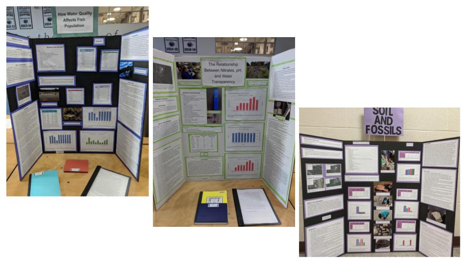 I wanted to congratulate you on the excellent work that you guys did with the nitrate project. You were correct in asking those important questions. Excessive use of fertilizers in agricultural lands is one of the main reasons for high levels of nitrogen in waterbodies, leading to eutrophication and algal blooms. I liked that you tried to compare the stream, pond and soil nitrate values. Researchers and land managers are currently asking the exact questions that you are asking: what is the transportation and fate of these nutrients? As you mentioned, the process is complicated, because the physical and chemical characteristics of soil and that of the water that flows through it are extremely variable. Add to this, human activities like contruction fill. I also liked that you were able to compare the water quality with the fish population.