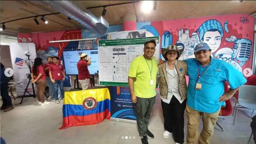 El estudiante Diego Andrés Luna presentó una investigación en curso sobre los servicios ecosistémicos que los bosques urbanos brindan a las personas en la Reunión Regional GLOBE LAC en Panamá.