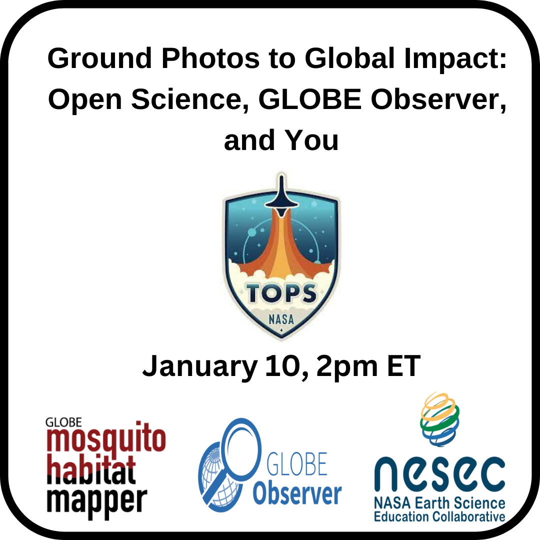 Únase a GLOBE Mission Mosquito y Peder Nelson de GLOBE Observer en este seminario web especial que presenta Open Science 101.