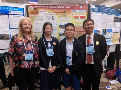 El equipo de estudiantes de Tailandia presenta su investigación sobre mosquitos, "Situación del dengue con diferentes ecológicos y ambientales" en la 23ª Reunión Anual.