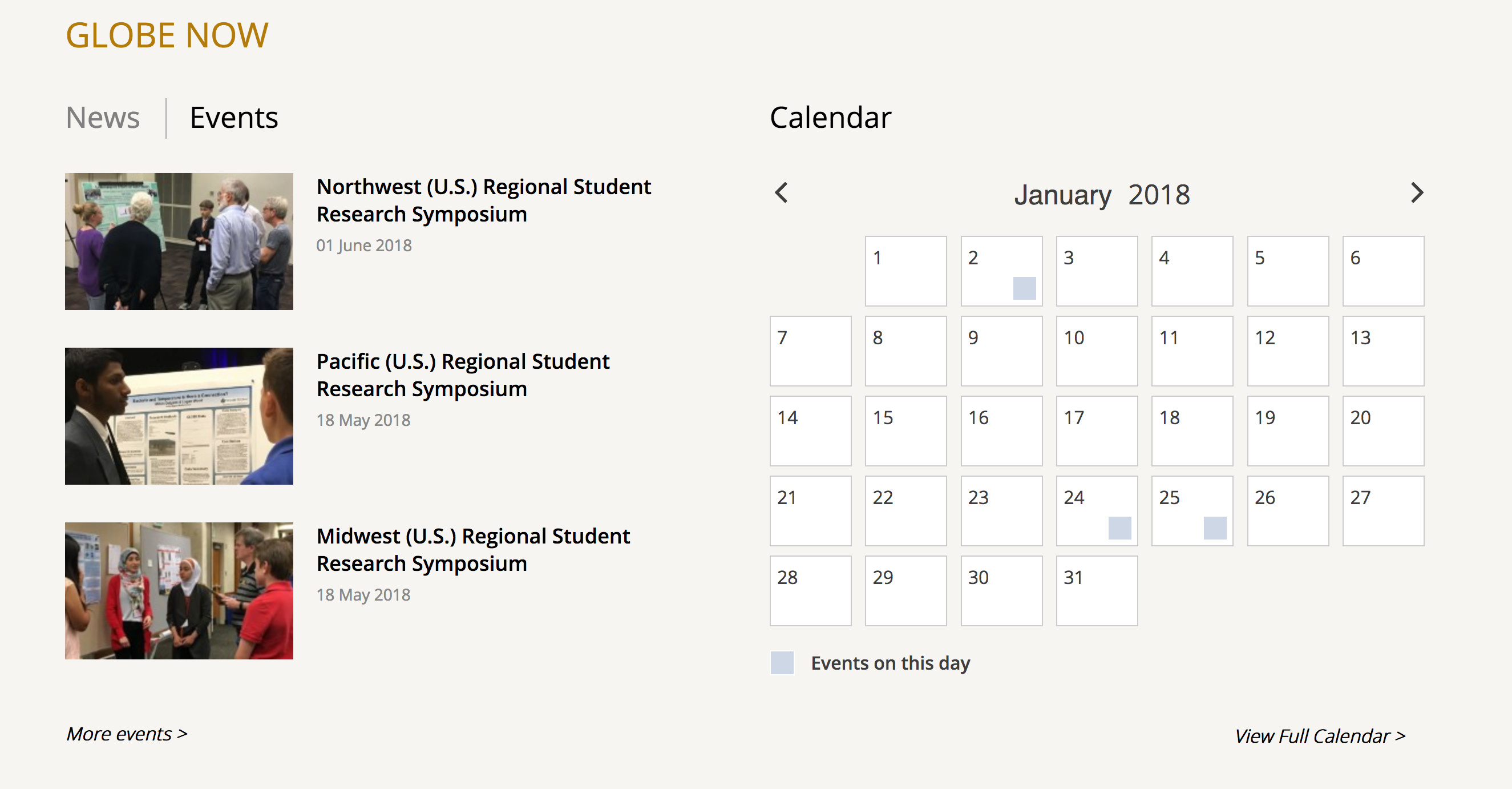 On your question - Events would typically be what's coming, while News is usually a description of what happened.