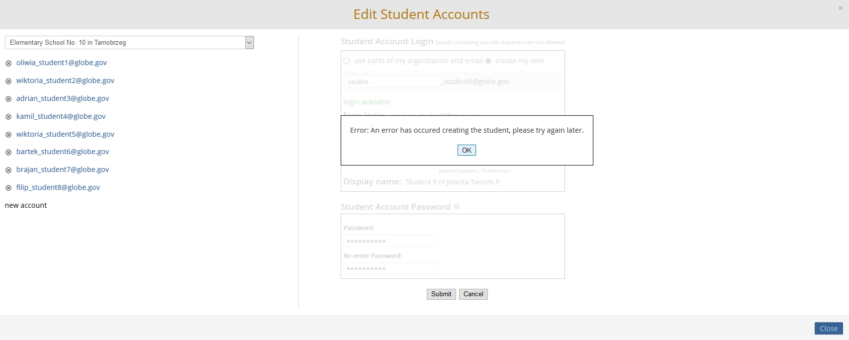 RE: Error while setting up students accounts
