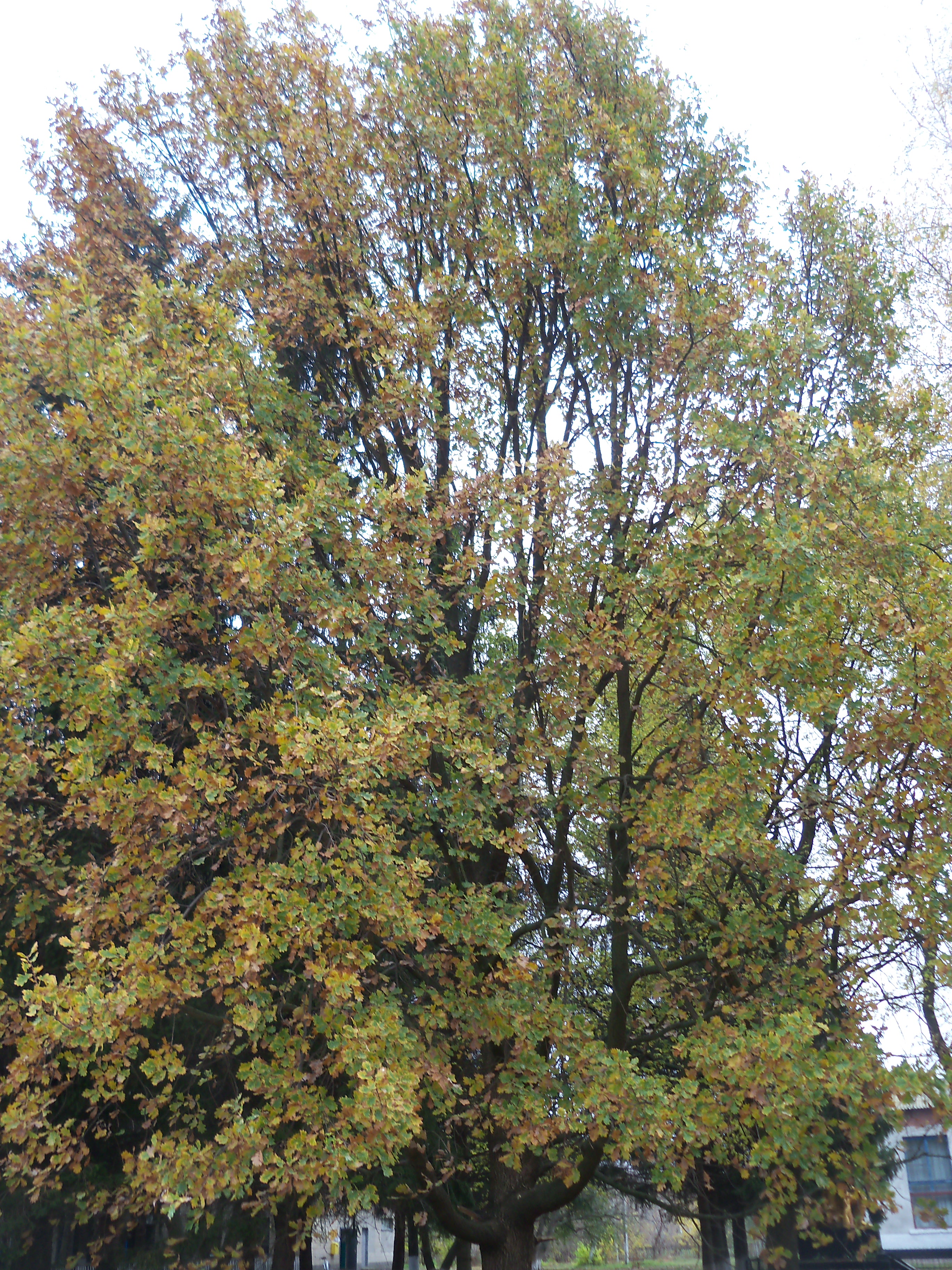The weather is warm.   The leaves in the trees change the color and slowly fall off.