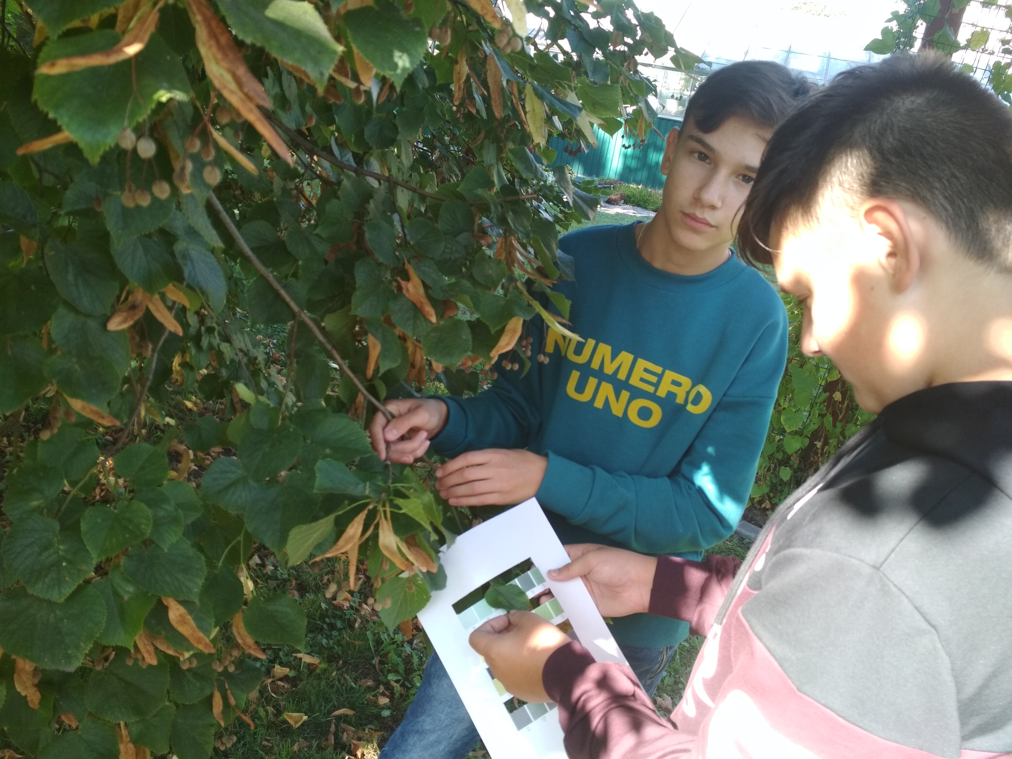 My boys began to observe the leaves of our lime. On September 25 we have the following results: leaf №1 - 5G 4/2, leaf №2 - 5G 4/2, leaf №3 - 5G 4/2, leaf №4 - 5G 4/2.