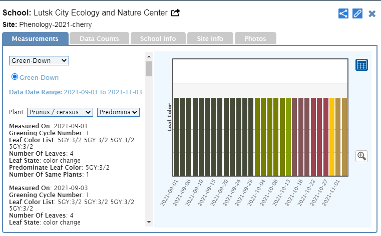 Hello everyone. Students of our center (Lutsk City Ecology and Nature Center, Ukraine) observed a change in the color of cherry leaves. We obtained the following results: