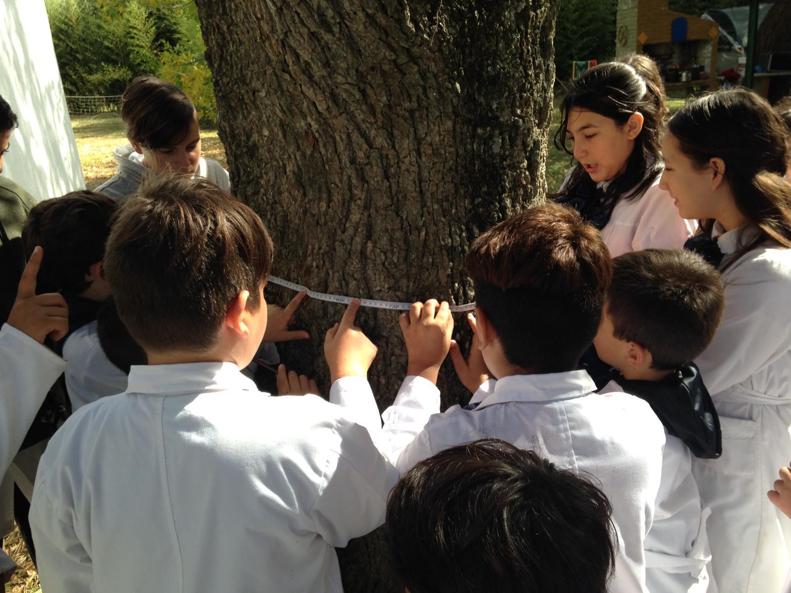 La idea de esta actividad, como en todas las que realizamos para GLOBE dentro del área de investigación de biometría y cobertura terrestre, es utilizar siempre especies nativas, por lo cual solamente pudieron observar y medir un ceibo (Erythrina crista-galli L.), que es el árbol y flor nacional, en el predio del patio de la escuela, y luego se trasladaron caminando a un pequeño montecito cercano. Allí utilizaron un ejemplar de molle (Schinus molle) y uno de espinillo (Acacia caven) para la observación.